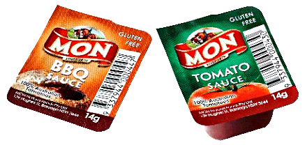 Mon portion control sauces come in tomato and BBQ flavours - our innovative technology ensures you keep the sauce on your pie and not on your pants