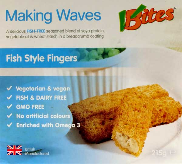 Ingredients: Water, breadcrumbs, sunflower oil, wheat flour, soya protein, textured vegetable protein, flavouring, wheat starch, salt, onion powder, thickener: carrageenan; spice extracts