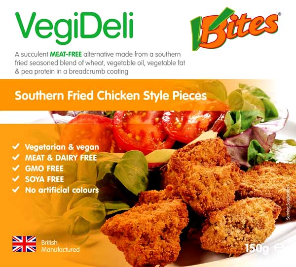 Our amazingly realistic soya-free Southern Fried Chicken Style Pieces have all the lip-smacking taste and authentic texture of genuine Southern Fried Chicken but are animal free so perfect for vegetarians,